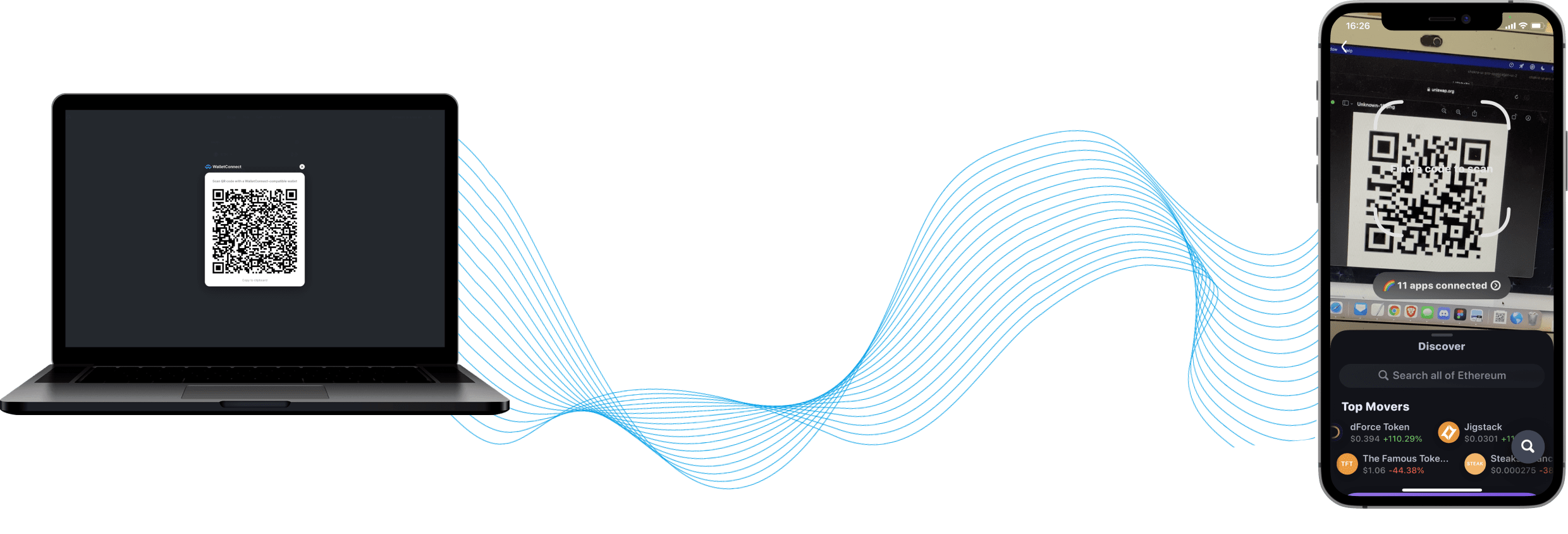Hundreds of dapp’s use WalletConnect to connect with wallets. Give users the choice to use your dapp with their favorite wallet on any device. There is easy integration with our Javascript, Swift, or Kotlin SDK’s.